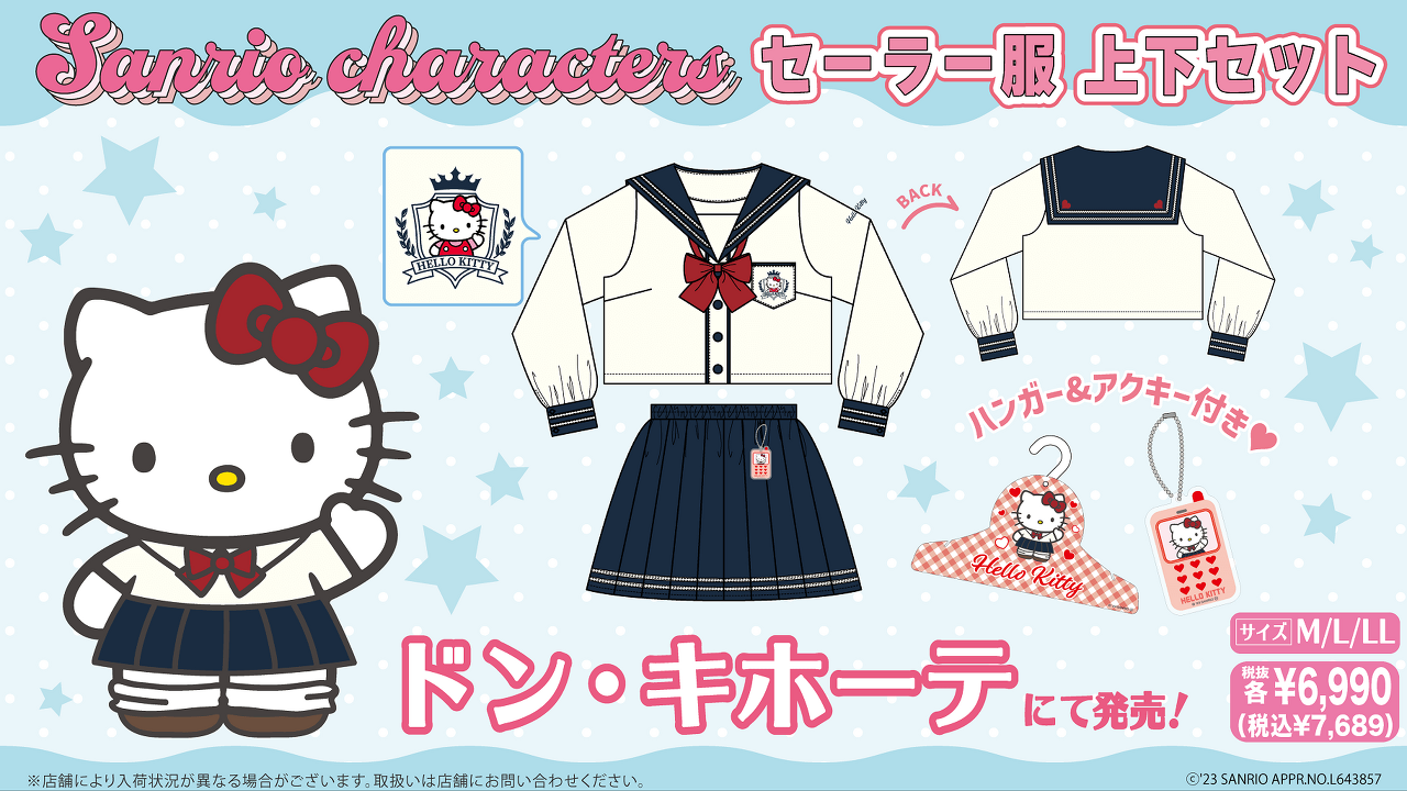 돈키호테 한정 - 산리오 세일러복 상하의 세트 출시(헬로키티, 폼폼푸린, 시나모롤, 마이멜로디, 쿠로미, 포차코)