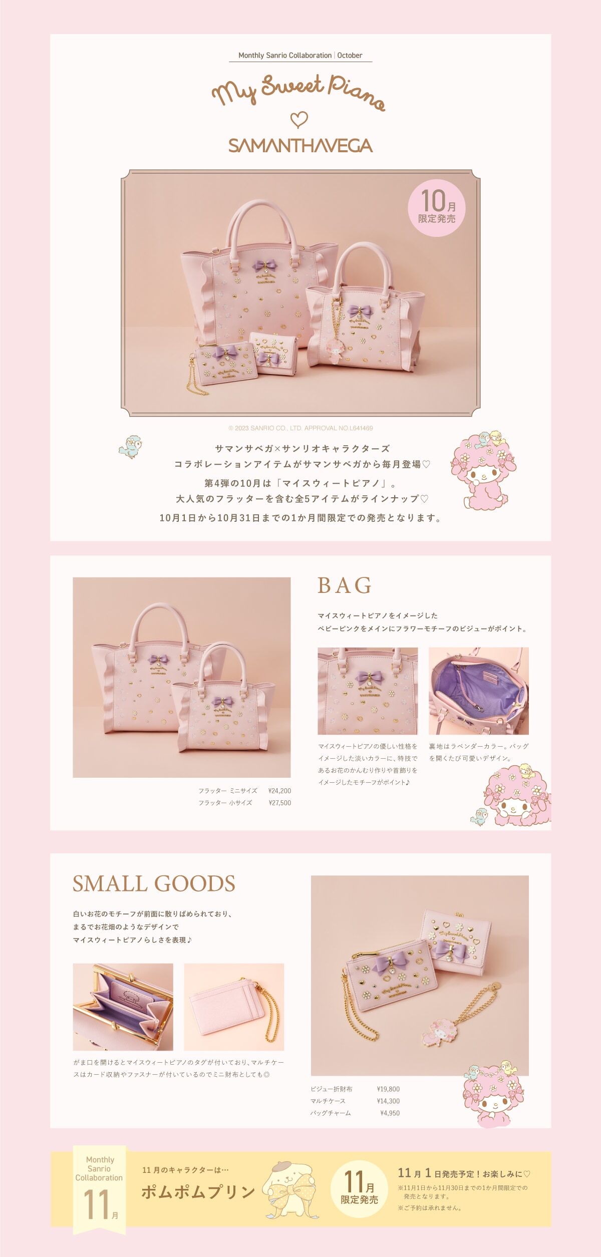 산리오 포차코 & 마이 스위트 피아노 x 사만다베가(SAMANTHAVEGA) 콜라보 가방/지갑/멀티파우치 본문